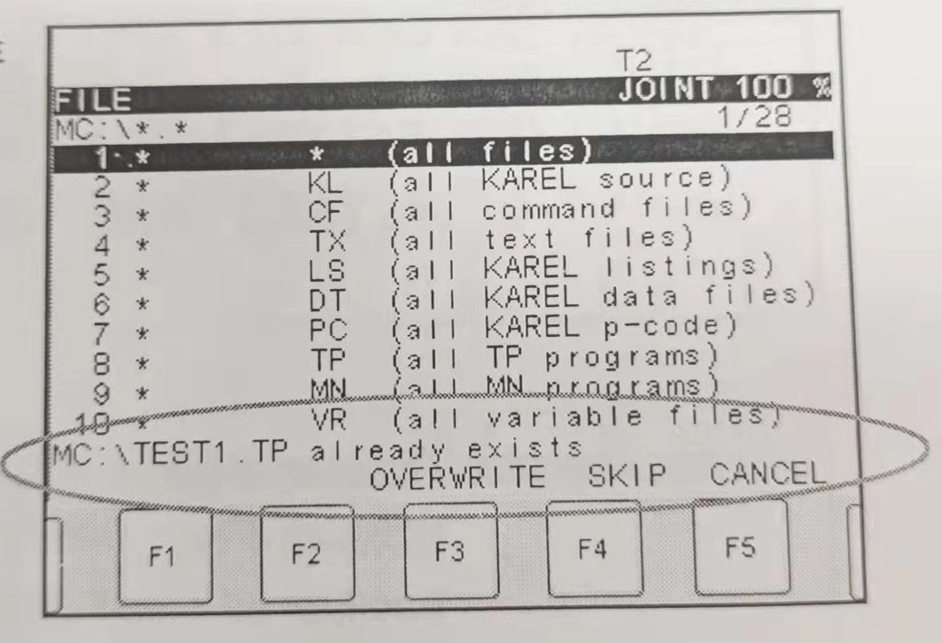 注意:若控制柜 SRAM 中有同名文件存在,則第七步后回顯示下圖畫面: