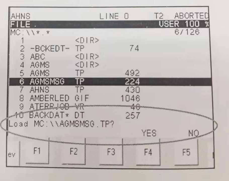 5. 屏幕中出現:Load MC: \AGMSMSG.TP?(AGMSMSG. TP 的文件要載入嗎?)
