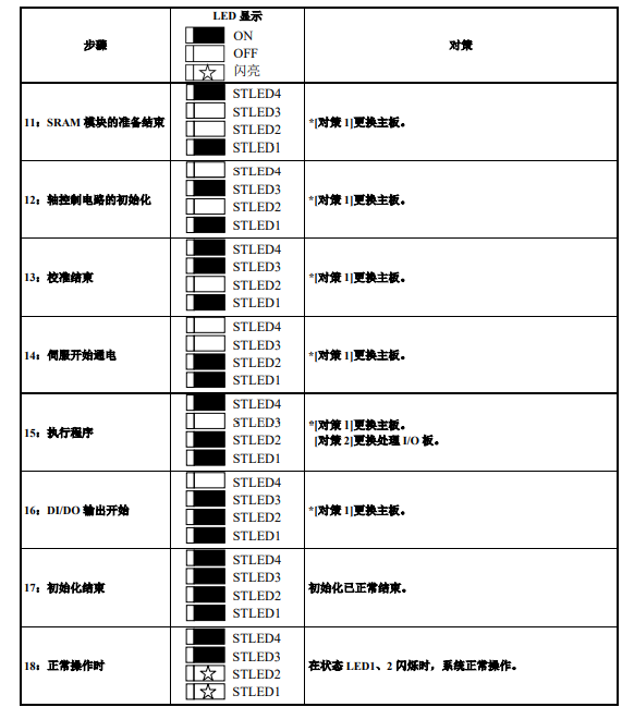 在接通電源后,步驟11開始依次按照步驟1、2、···的順序亮燈,出現不正常的情況時,在該步驟停下。